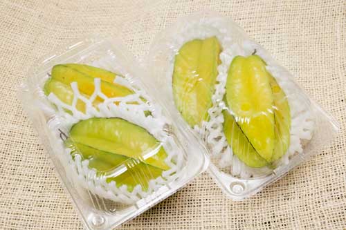 ・国産のスターフルーツは数が少なく、いつまで経っても渋さが残る外国産とは明らかに違う美味しさで、南国フルーツの柔らかな酸味と、爽やかでみずみずしい甘み、トロピカルな香りにご満足頂けると思います。
