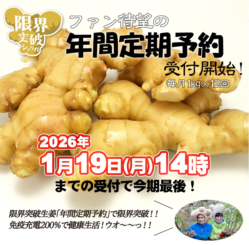 毎月第3火曜日に1kgの生姜を出荷いたします。