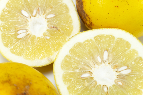 ・サワーポメロは鹿児島県の隠れた名産品で、ジューシーなのに果汁の滴りが少なく食べやすい品種です。