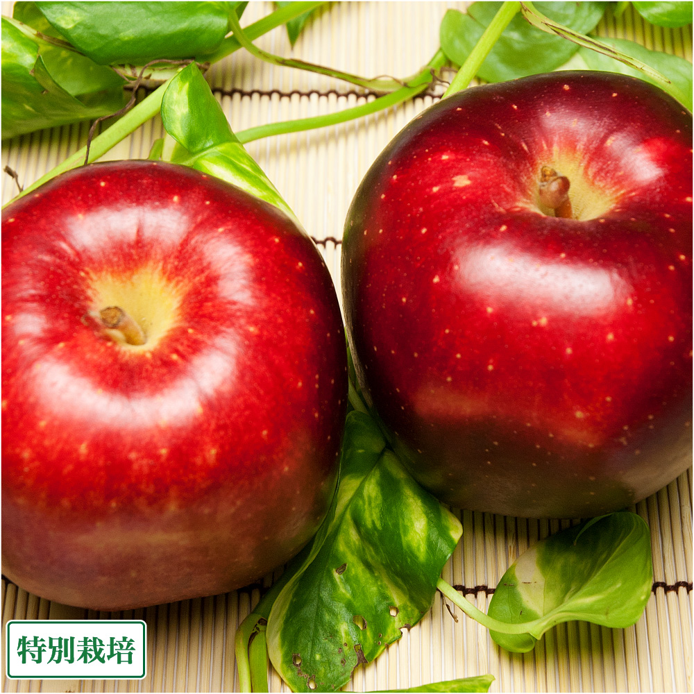特別栽培で化学肥料を使わず農薬を慣行の半分以下に抑えた、清浄な土から育てた丸かじりOKの健康りんごです。